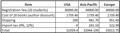 For example, costs in $US for a remote Introductory class for three regions are as follows: